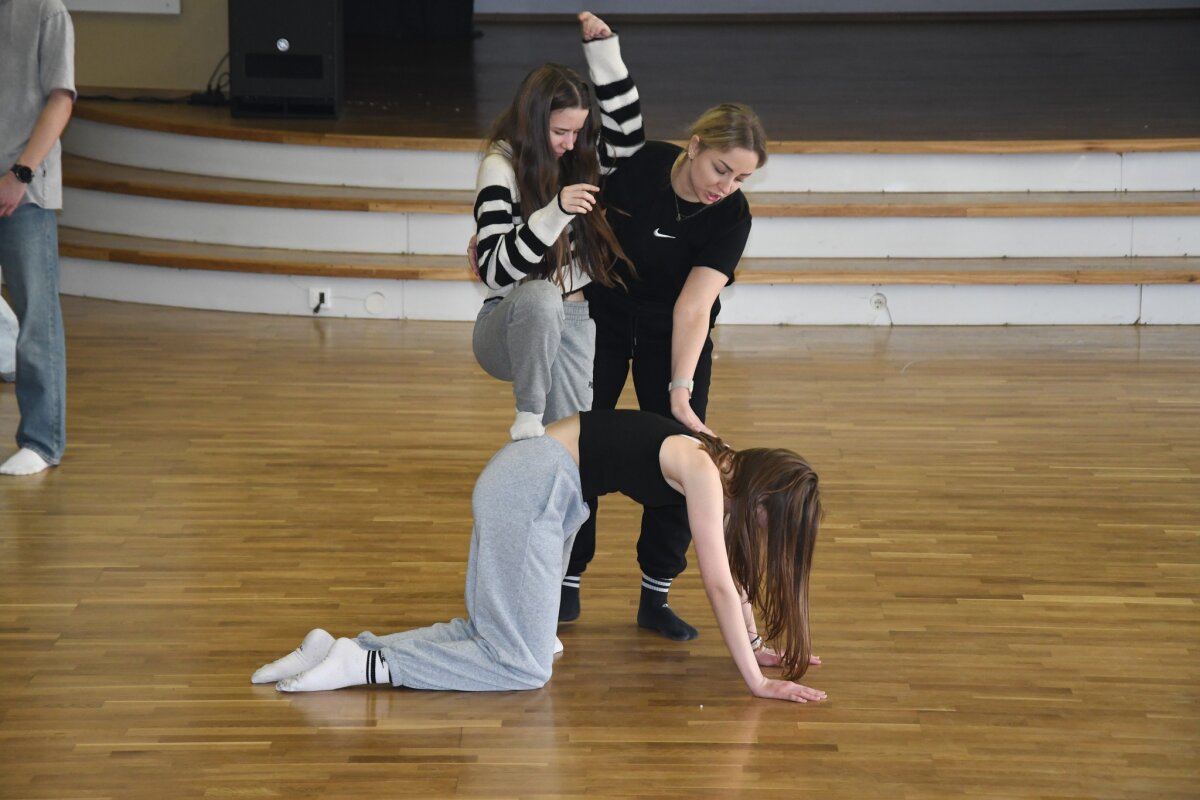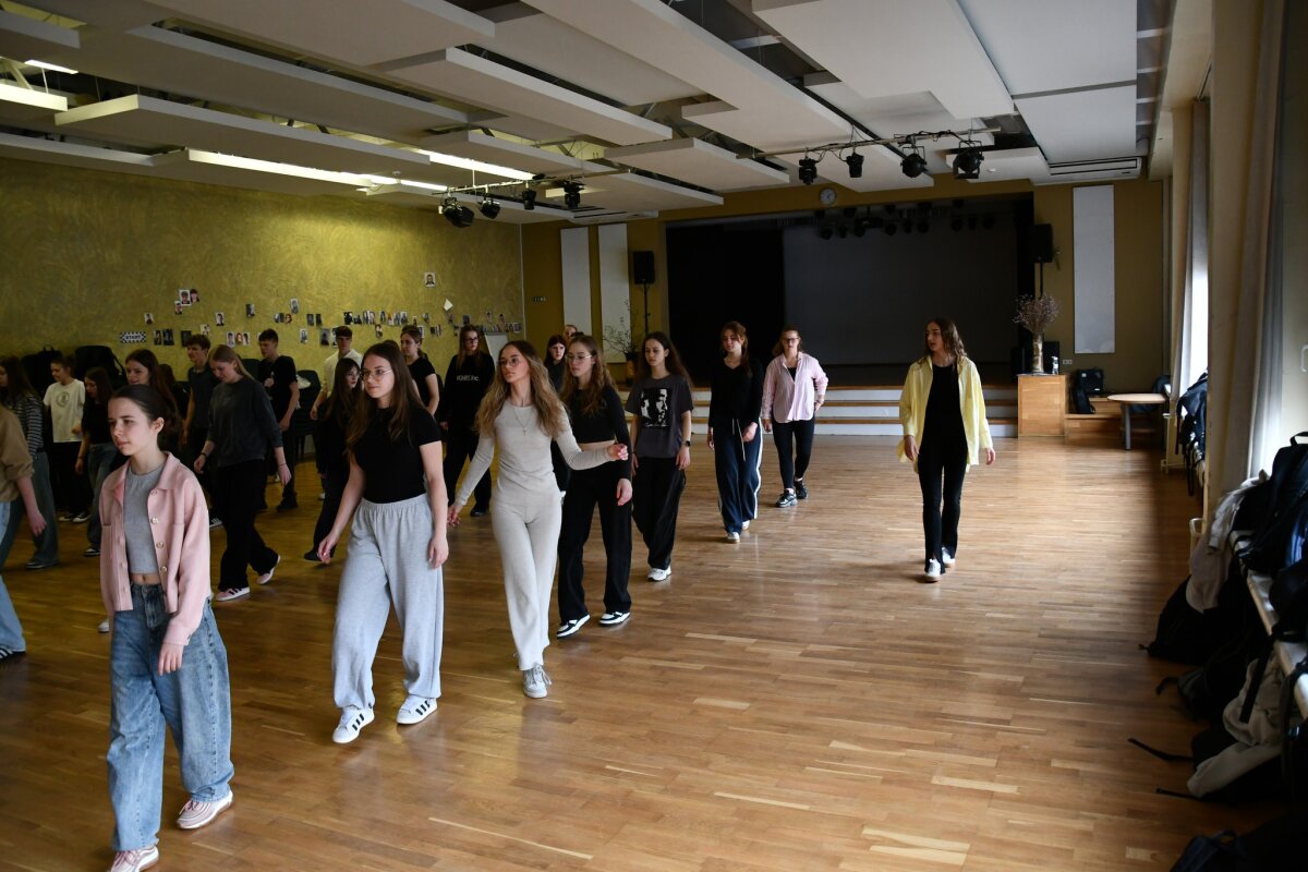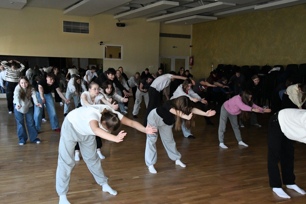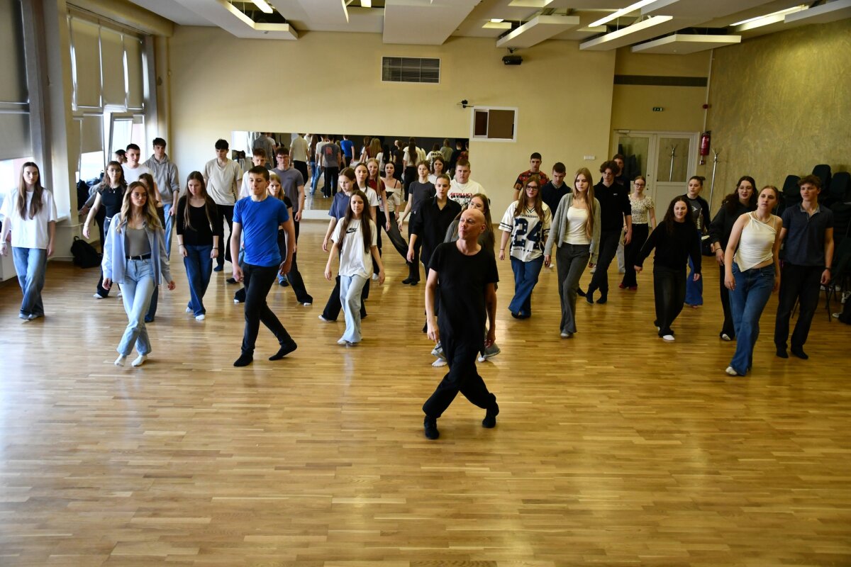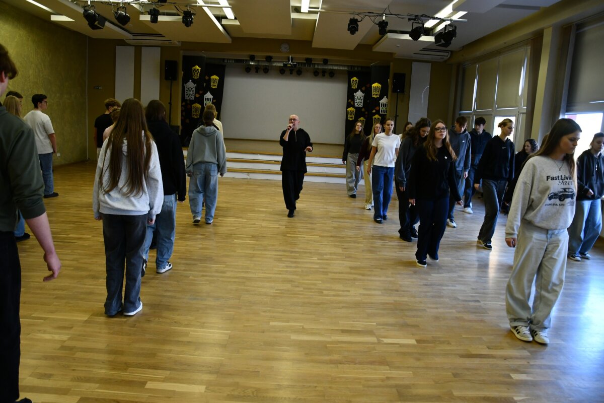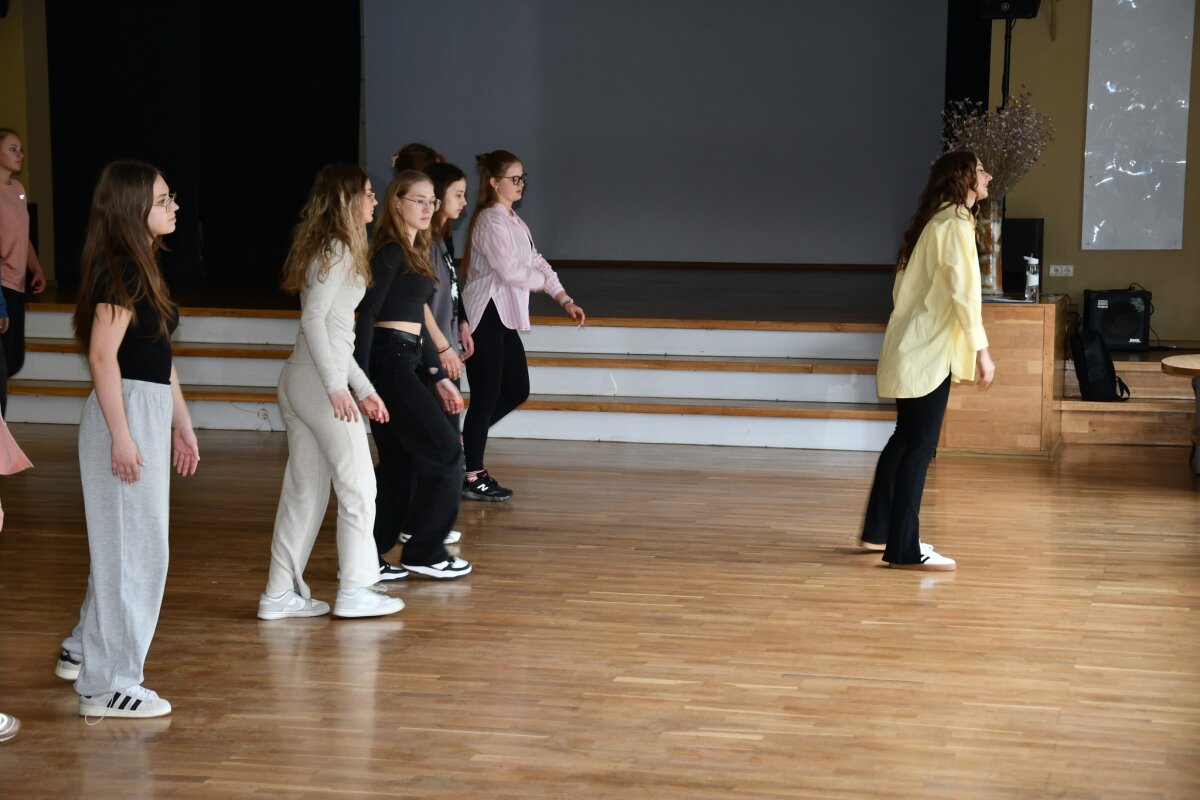 Choreografė Domantė Tereškevičiūtė, buvusi gimnazijos mokinė, veda užsiėmimus apie šokio techniką, choreografinių sekų kūrimą ir emocinę raišką judesiu.