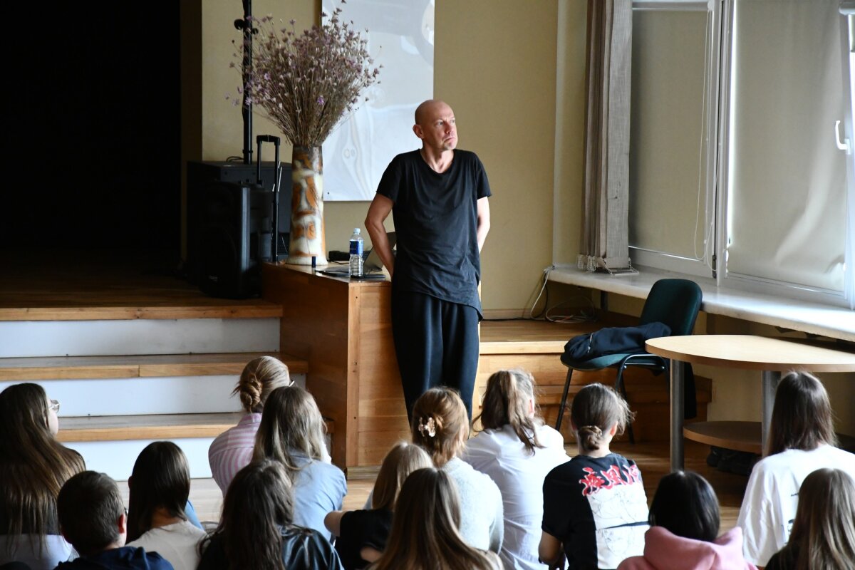 Gytis Ivanauskas mokinius veda per sceninės plastikos, improvizacijos ir emocijų valdymo pratybas, stiprina jų sceninį tikrumą ir spontaniškumą.