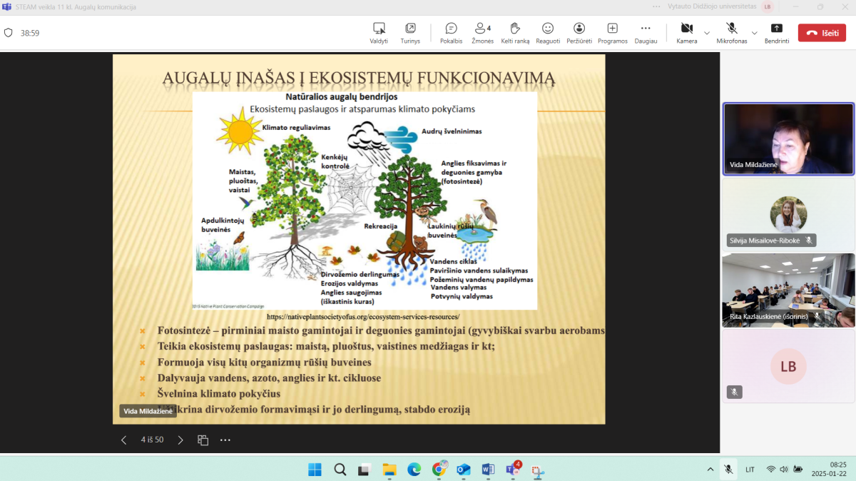Didelis dėmesys skirtas ir aktualioms aplinkosaugos bei tvarumo temoms. Devintokai VDU STEAM didaktikos centre tyrė CO₂ pėdsako mažinimo galimybes: komandose analizavo medžių vaidmenį anglies dioksido cikle, matavo medžių parametrus, skaičiavo biomasę, vertino CO₂ kaupimo potencialą ir kūrė teritorijų apsodinimo planus, taikydami biologijos, chemijos, matematikos ir technologijų žinias. Kiti mokiniai konstravo „mirties kilpos“ maketus, atliko skaičiavimus ir bandymus, siekdami suprasti, kaip energijos tvermės dėsniai veikia realiose inžinerinėse sistemose.