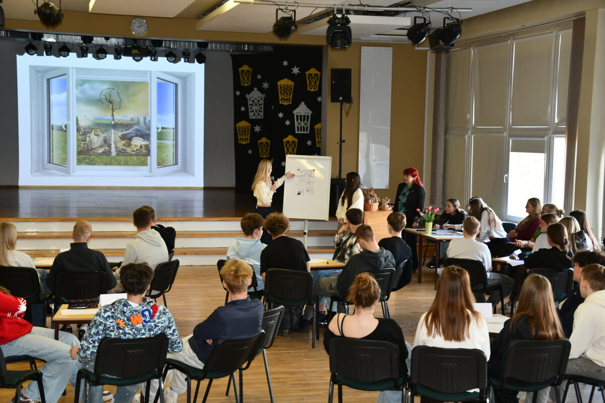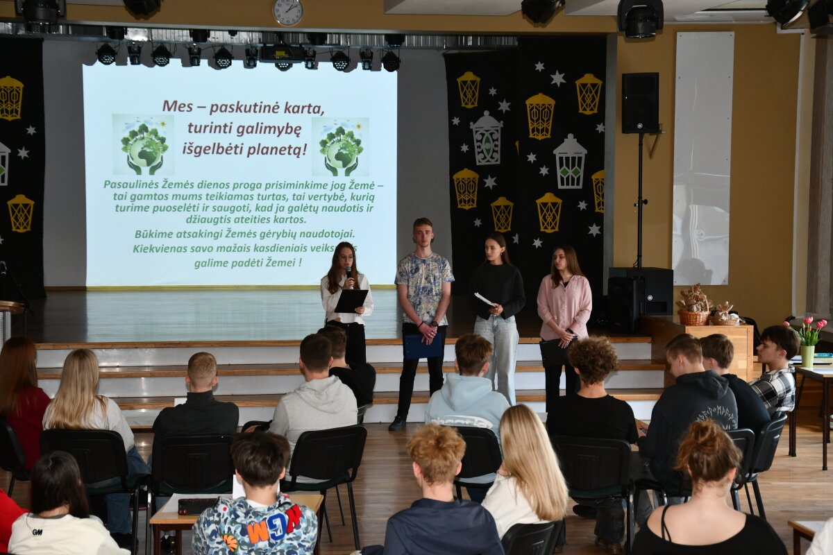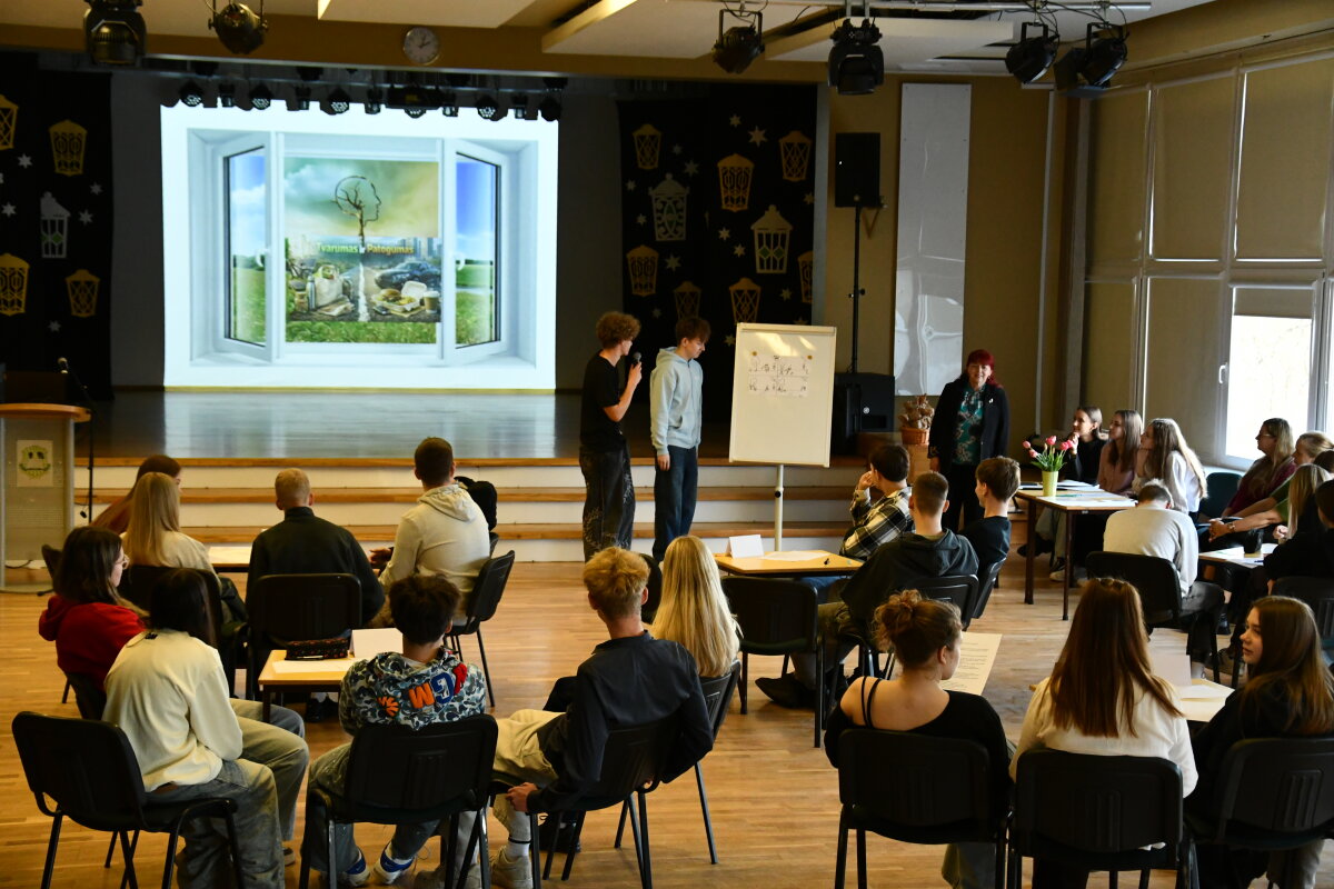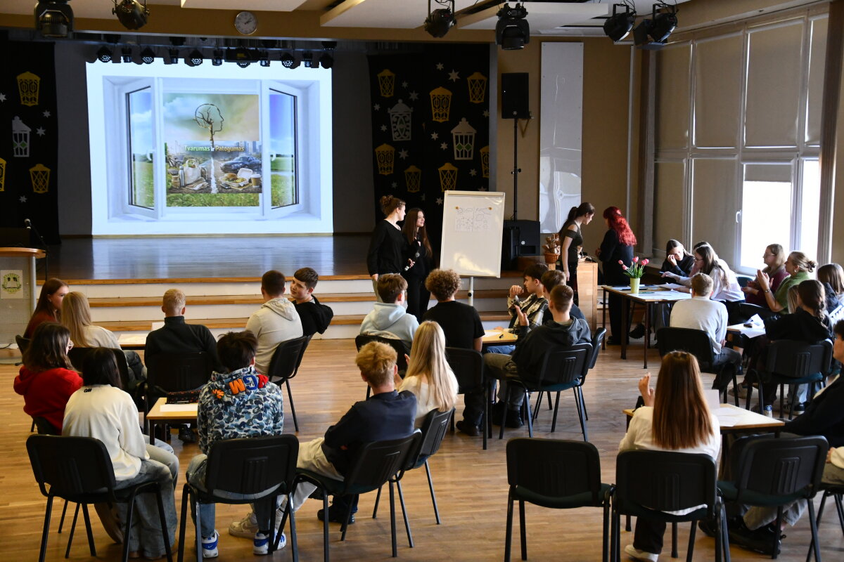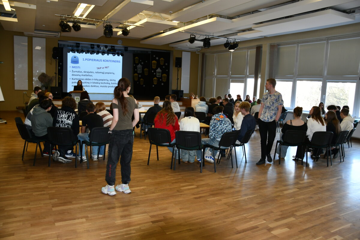 Kovo 20 dieną gimnazijos renginių salėje vyko jau tradicija tapusios varžytuvės „Globalūs iššūkiai – arčiau negu arti“. Varžytuvių šūkis „Šok į tvarų gyvenimo stilių!“ skatina mokinius sąmoningai, atsakingai vartoti, formuoti įpročius, lemiančius tvarų gyvenimo būdą.
